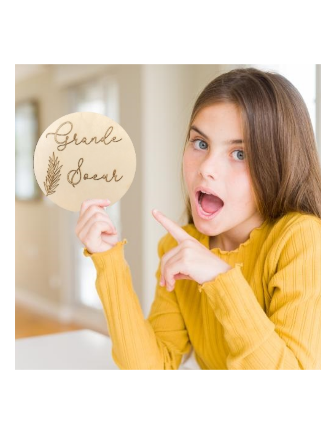 Carte - Médaillon en bois pour annoncer de façon originale l'arrivée de votre bébé !