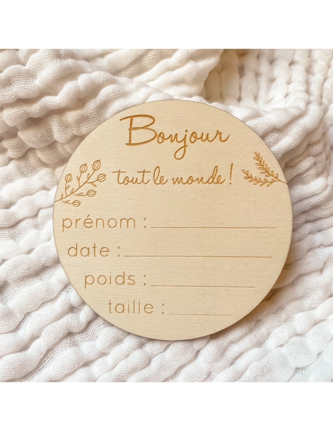 Carte en bois pour accompagner les photos de bébé et faire une annonce originale et visuelle à vos proches.