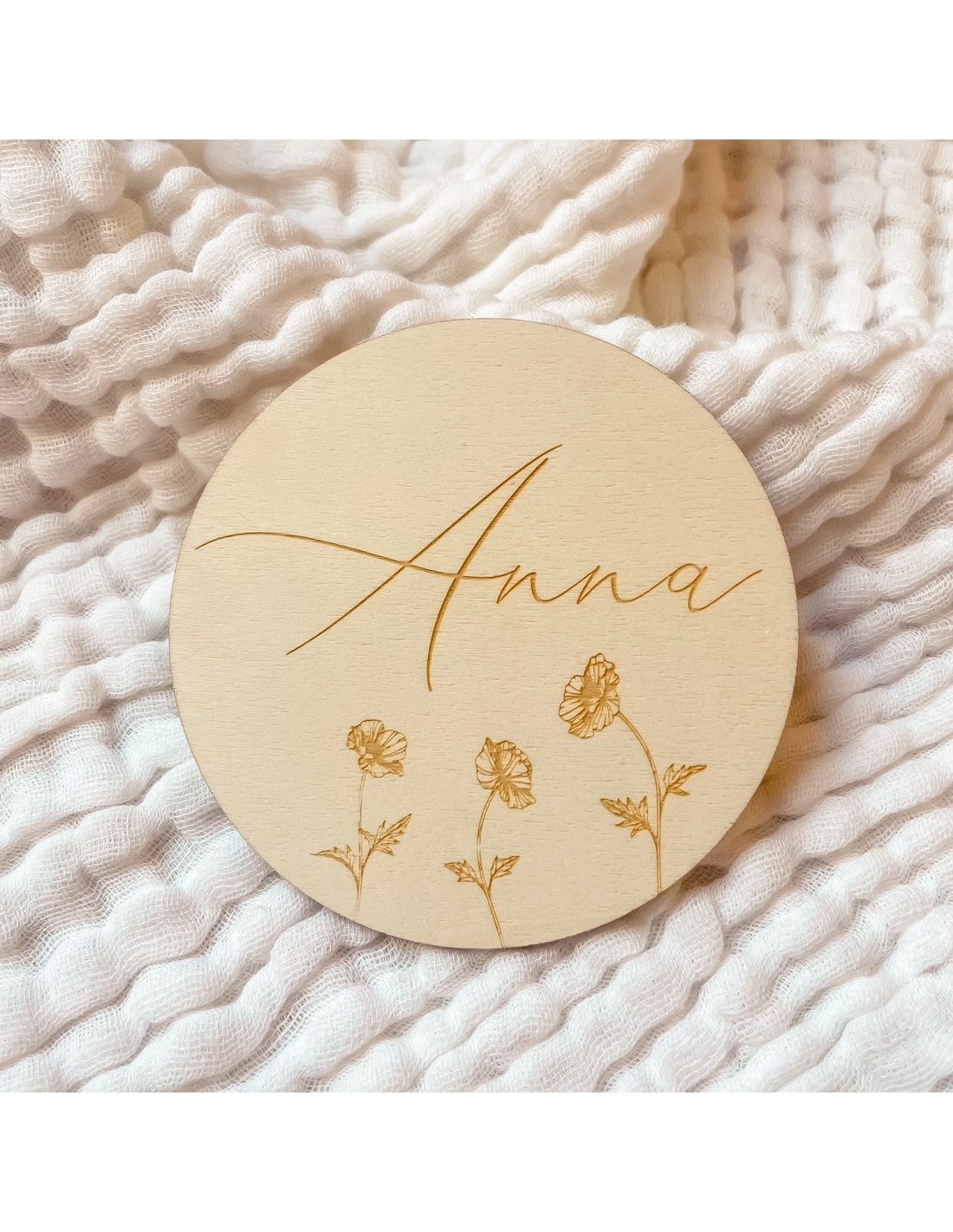 Carte en bois pour accompagner les photos de bébé et ainsi créer de précieux souvenirs.
