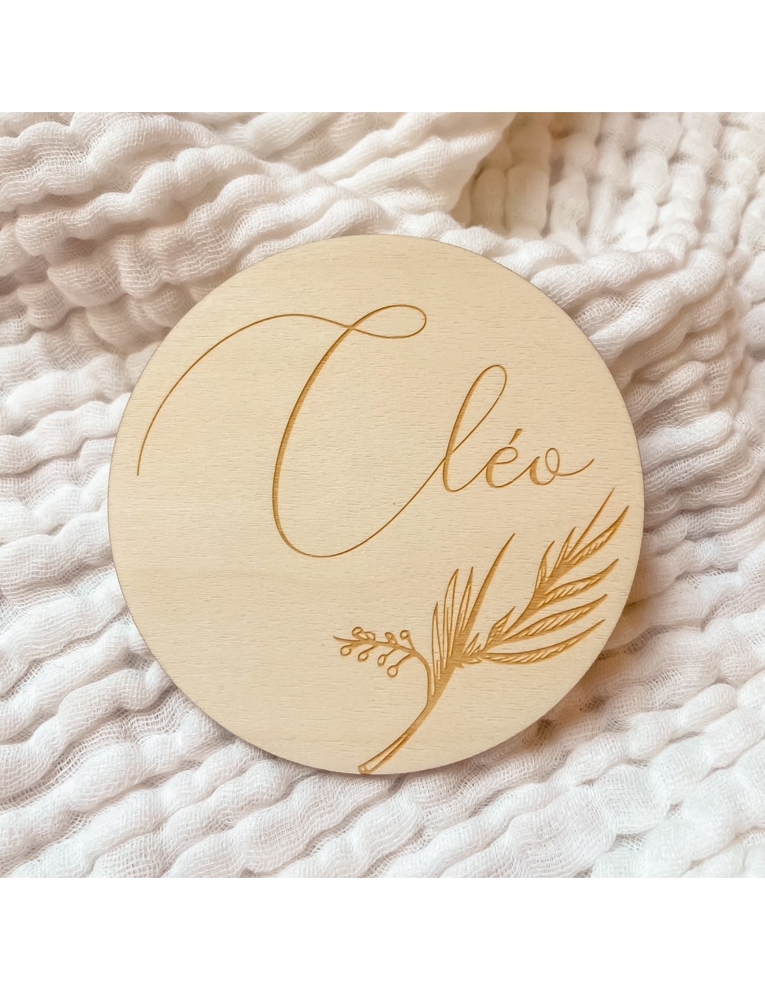 Carte en bois pour accompagner les photos de bébé et ainsi créer de précieux souvenirs.