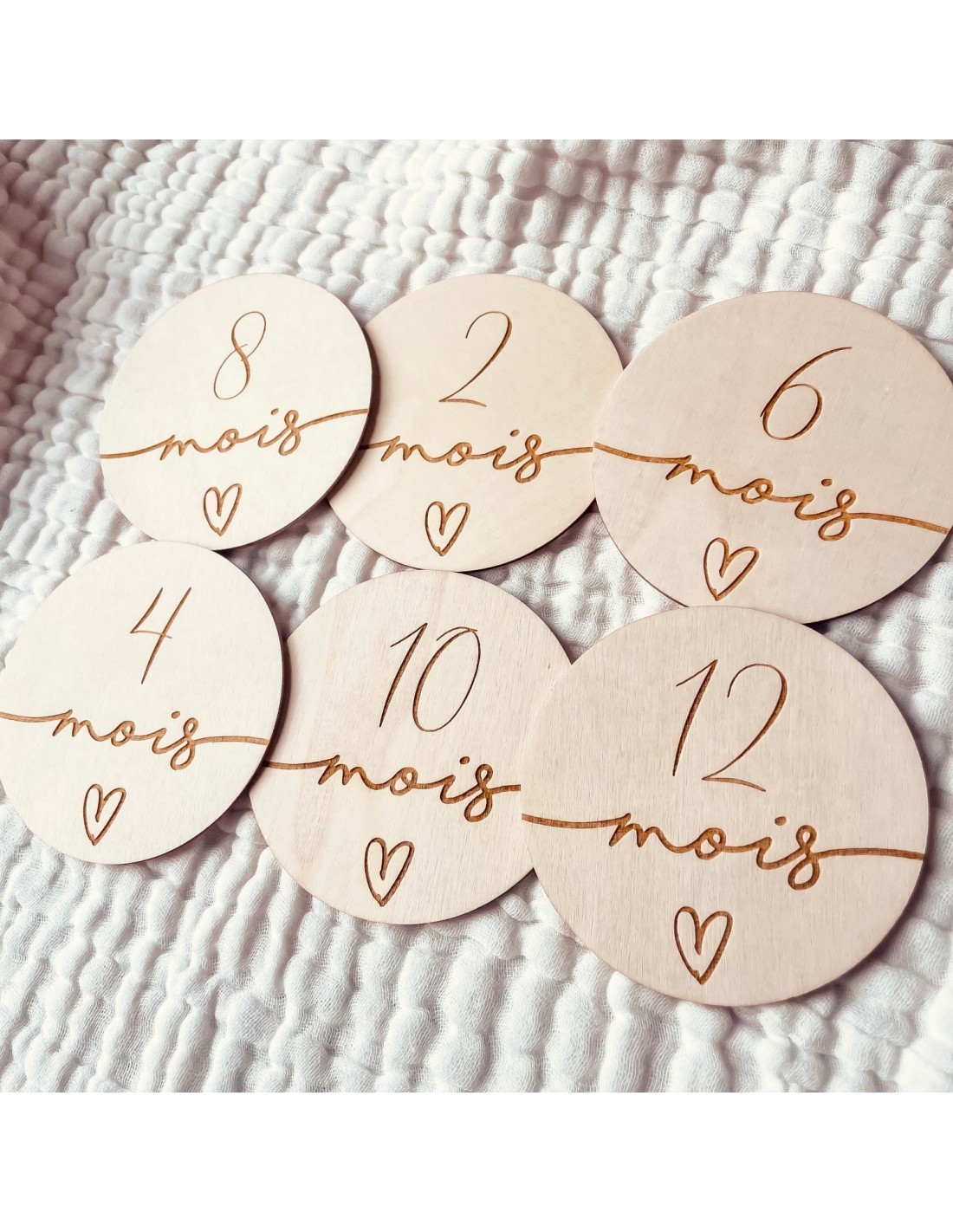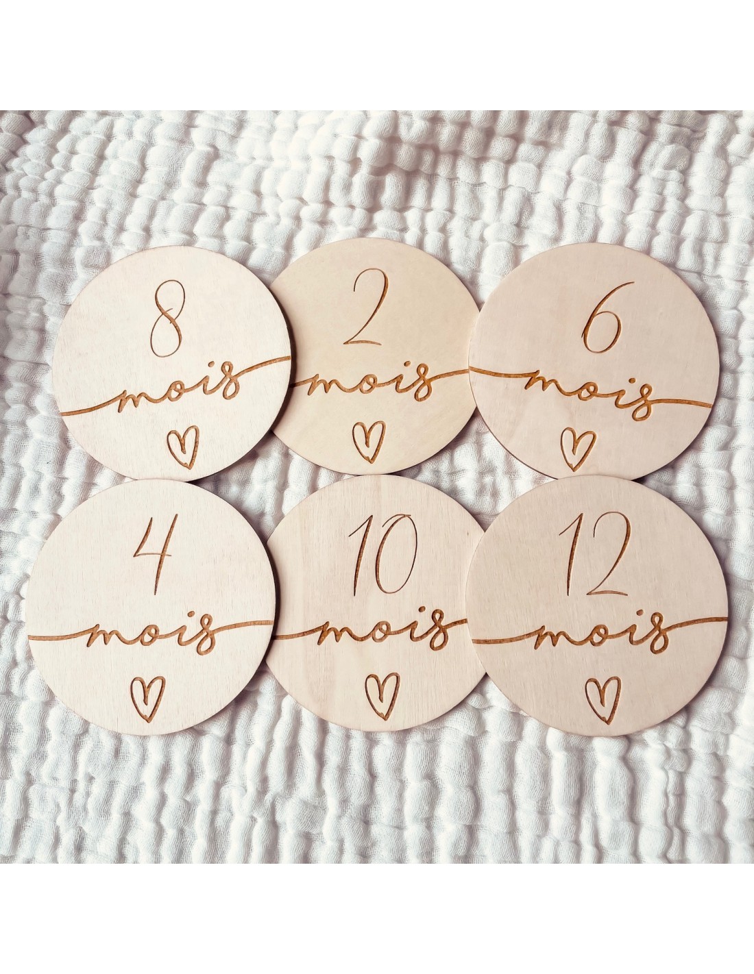 Lot de 6 cartes étapes en bois de 1 à 12 mois