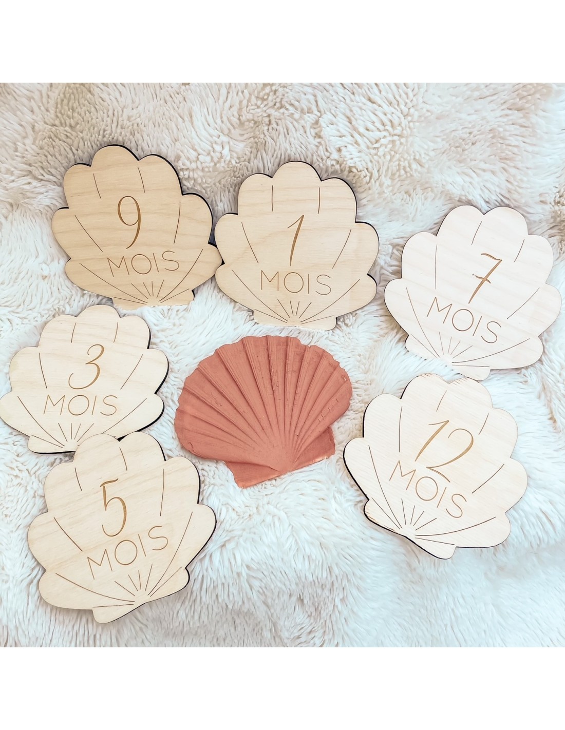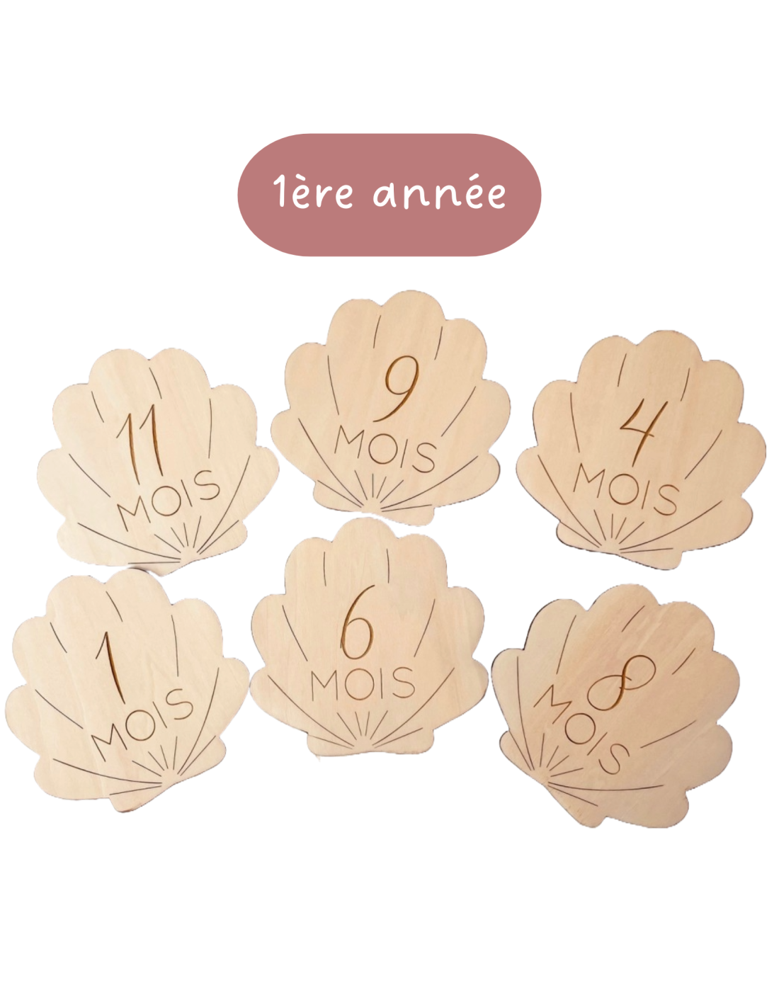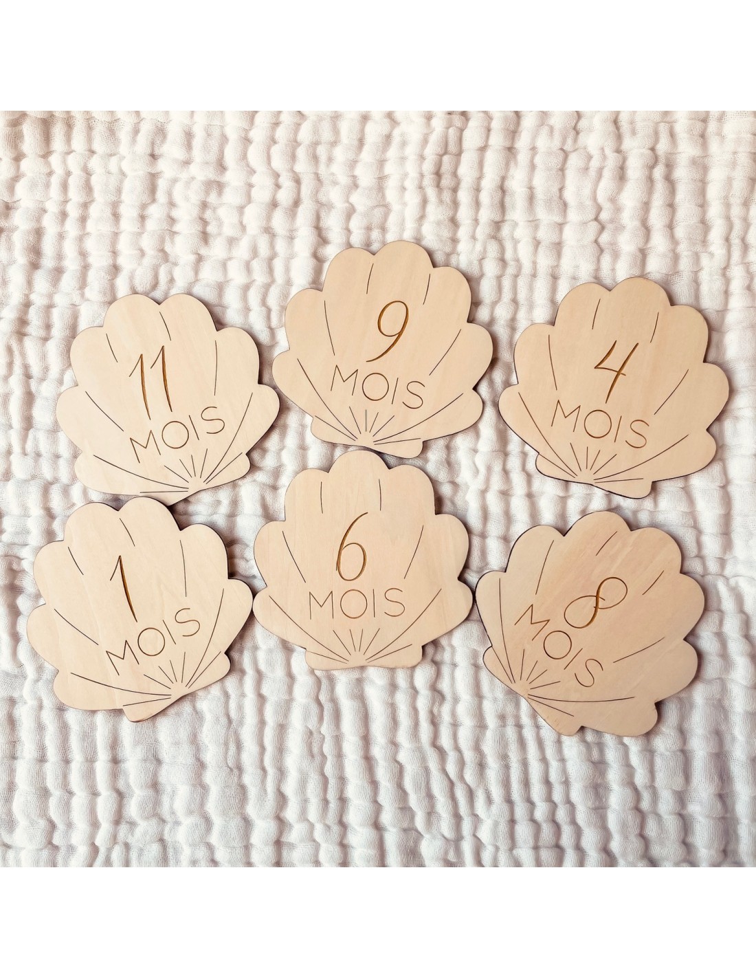 Lot de 6 cartes étapes en bois de 1 à 12 mois