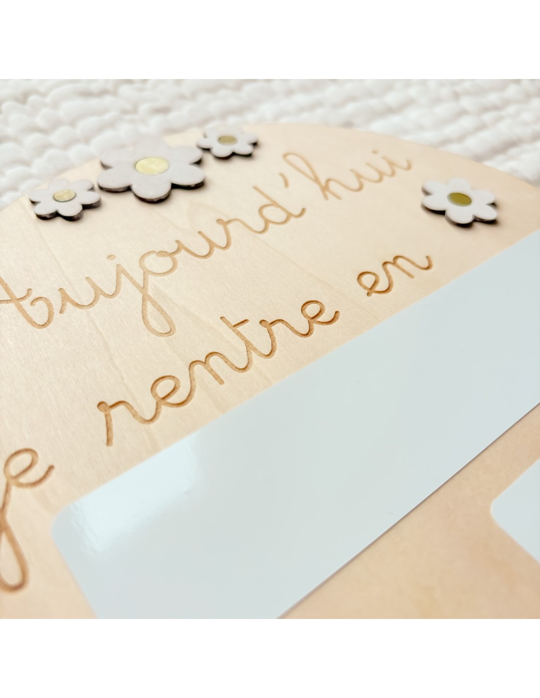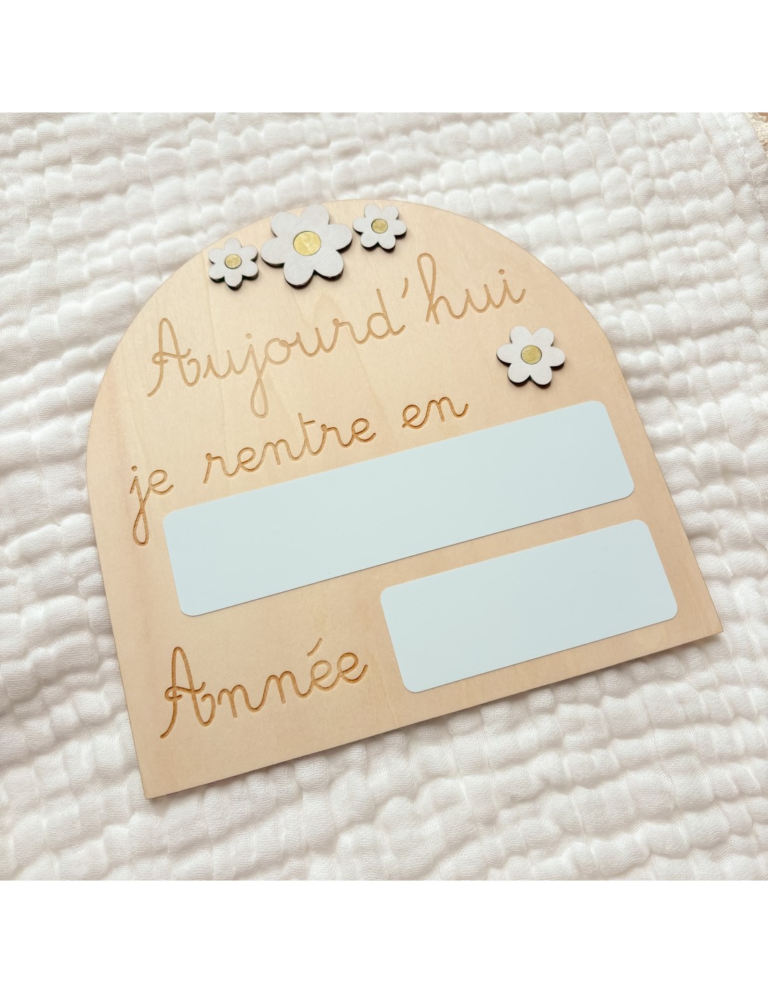 🌼 Design Naturel et Poétique : Une jolie forme arrondie, des gravures douces et des fleurs en bois apportent une touche chaleureuse et joyeuse à vos photos de rentrée.