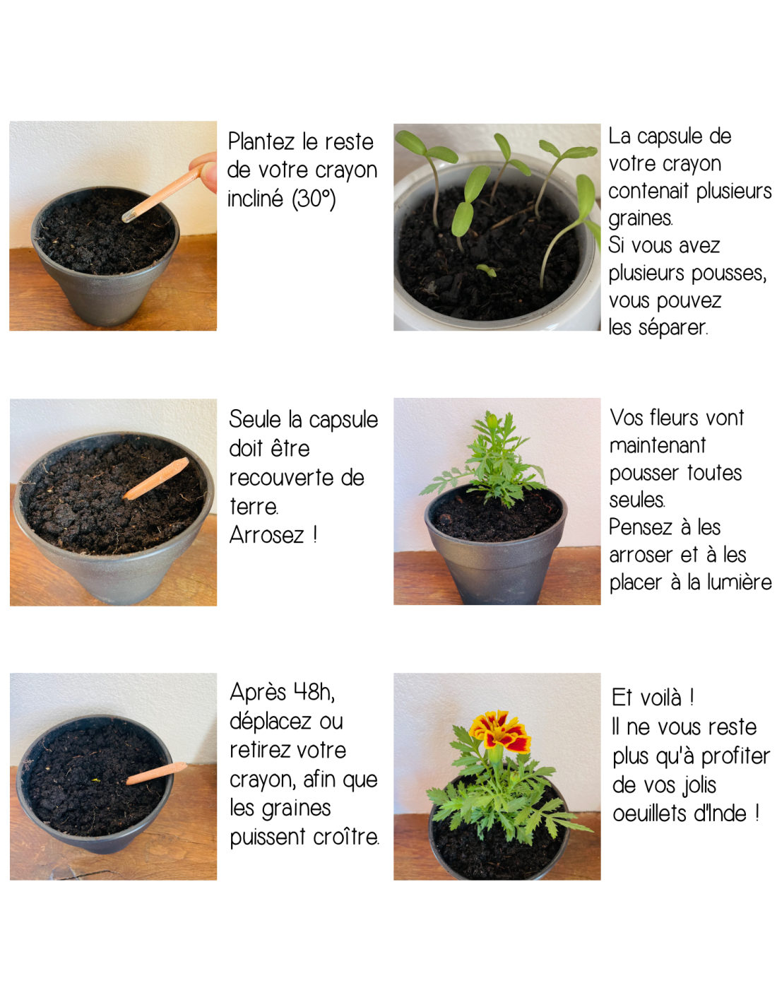 1 crayon plantable avec capsule de graines d’œillets d’Inde