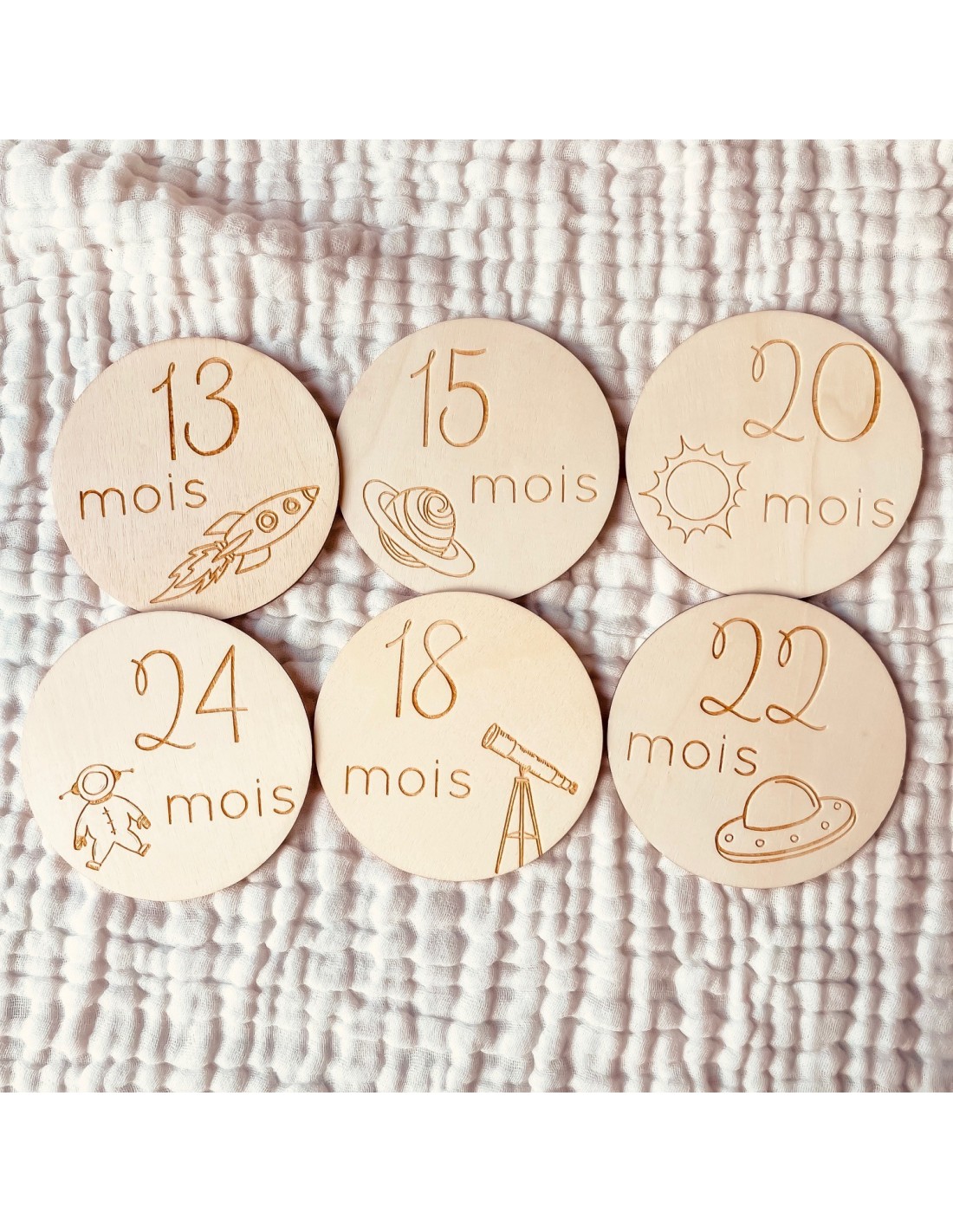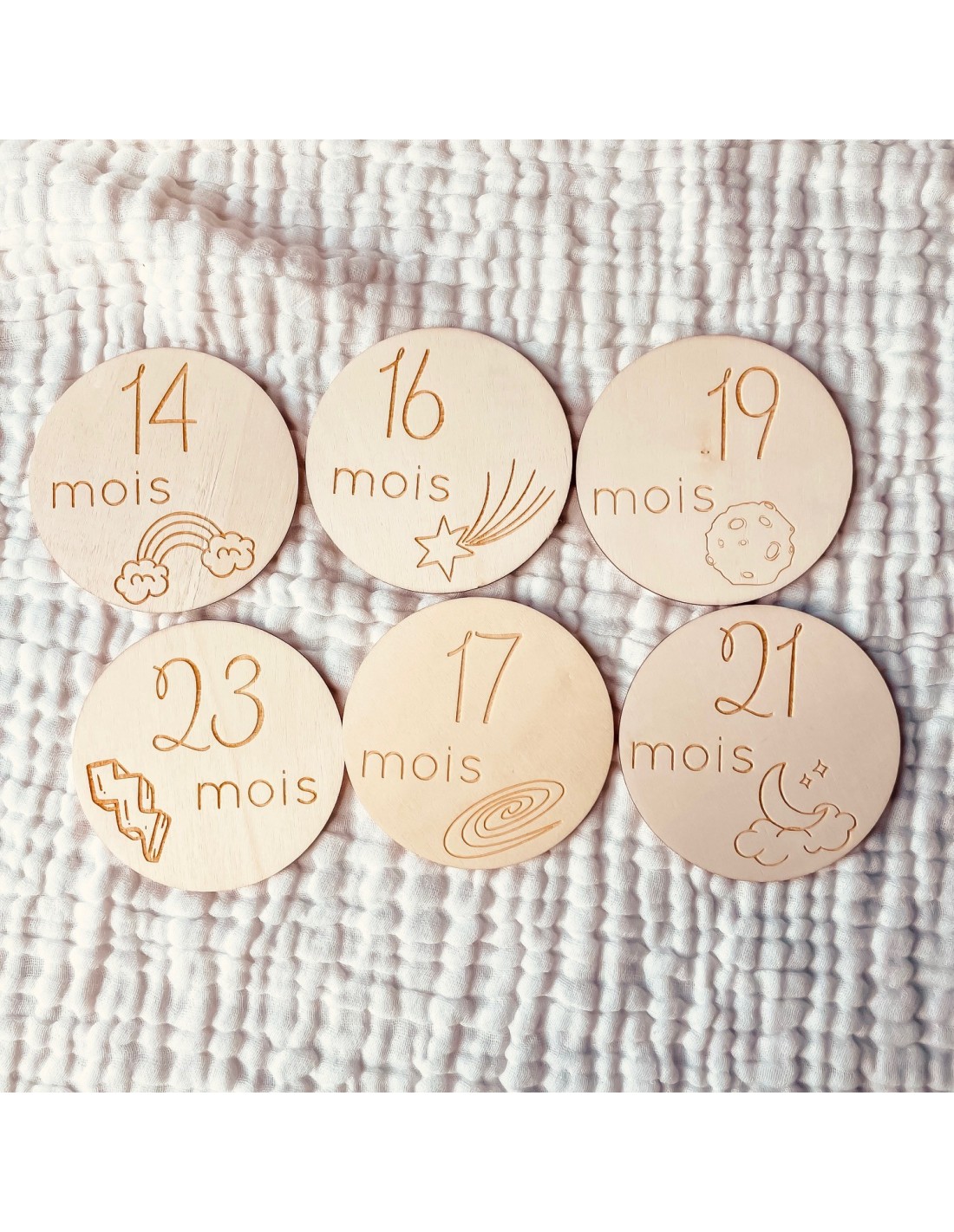 Lot de 6 cartes étapes en bois de 13 à 24 mois